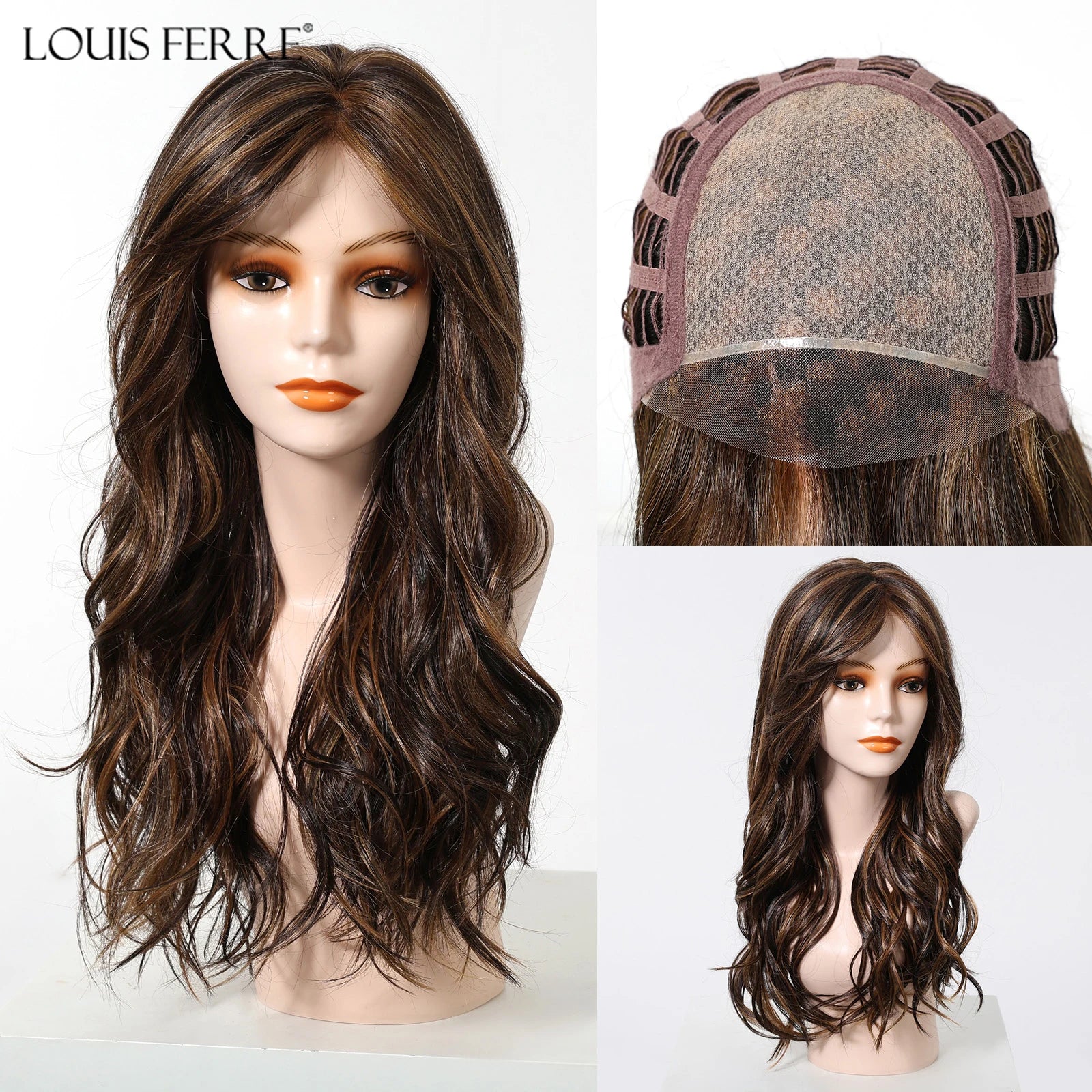 Long Wavy Curly Lace Front Synthetic Wigs for Women Brown With BLonde Highlights MONO Top Wigs Free Part Futura Wigs Glueless